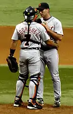 Rodríguez talking with Mike Maroth while playing for the Detroit Tigers, July 11, 2005.