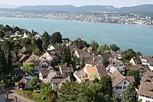 In his pamphlet "An attack on the Orthodox church" (December 1937) he accused Nietzsche of fuelling Bolshevism,[94] and Stalinism.[95] The Gestapo confiscated this work and banned him from the Reichskulturkammer and independent political activity.[96] In May, Ilyin decided it was the time to leave but the Berlin police forbade his departure.[97] "On June 17, 1938, [he declared] I am ready to testify under oath that I and my wife are the purest Aryans and that I have never belonged to Masonic or affiliated organizations anywhere."[98][lower-alpha 4] Early July, he was permitted to visit Karlovy Vary for a treatment of his migraine. Instead he went to Münich with all his manuscripts. In August he asked the Swiss authorities to allow him to settle as a scientist, a philosopher and promote his theory on art. (With a Nansen passport he visited a congress in Locarno.[99][100]) With financial help from Sergei Rachmaninoff, he was able to pay the bail, but he was not allowed to work or to interfere in any way with Swiss politics.[101] On 17 September his furniture and library arrived he wrote to Ivan Shmelev.[102]
