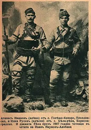 Ivan Naumov (Bulgarian: Иван Наумов), nicknamed Alyabaka or Alyabako was a Bulgarian revolutionary, a member of the Internal Macedonian-Adrianople Revolutionary Organization (IMARO).[1][2][3][4]
