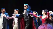 In early 2013 Ivan Ozhogin cast for the role of Count von Krolock in the Berlin production of Dance of the Vampires and subsequently replaced Thomas Borchert. On February 8, 2013 Ivan performed for the first time in the German-speaking version of the musical on stage of the Theatre of the West in Berlin and became the first Russian actor to get cast in the original German production.[7][8][9] He stated in an interview that he is not aware of any other musical actors that would perform the same role in two different languages and in two different countries at the same time.[10][11]