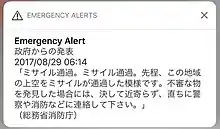 - "Disaster agency urges municipalities to upgrade J-Alert receivers". The Japan Times Online. 7 August 2017. Retrieved 29 August 2017.