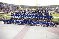 Traditionally, Prancing J-Settes are positioned behind the captain on three distinct named rows based on height for non-field performances. The three rows are "Short & Sassy", "Magnificent Middle", and "Tall & Tough".[6]