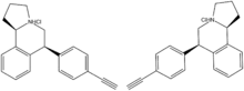 Incorporating the pyrrolidino ring onto the tetrahydroisoquinoline scaffolding markedly improves potency, although this only works for one of the available stereoisomers. JNJ-7925476 is a racemic preparation of the more potent diastereomer. Of these enantiomers, the eutomer is the (6R,10bS) stereoisomer, known as JNJ-39836966, and the distomer, (6S,10bR), is JNJ-39836732