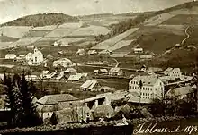 An already medieval built-up area, which is probably to be found in the vicinity of the Church of Saint Procopius (originally wooden, from bricks since 1777 thanks to the support of Ernst Adalbert von Harrach) had more diffusive character, also the area from the second half of the 18th century was almost out of order on the slope of the valley.[2]