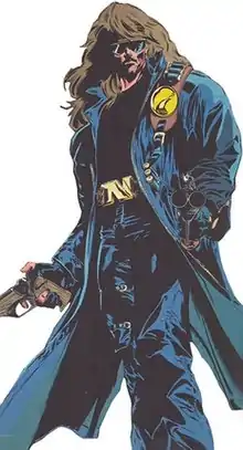 Nomad later teams up with the Punisher and Daredevil against a coalition of criminal organizations.[24] During the Infinity Crusade, Nomad is shown among dozens of superheroes who travel into outer space. Nomad doesn't have much involvement in the events, however, and he and Forge are literally seen hanging around during much of the action.[25] Nomad does confront an evil clone of Gambit who had gotten lost on the way to the battles.[26] Around this time, Nomad is one of the heroes recruited by Doctor Strange to battle the demonic threat of Lilin, a powerful ancient queen.[27]
