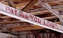 2007 - The station was renovated and the drop ceiling removed. Revealed on the rafters was a relic from the past, a sign that said, "Pay as you Leave."