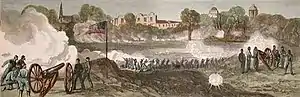 On July 10, the Union Army had taken up position around Jackson. The heaviest fighting came on July 12, during an unsuccessful Union attack.[5] Brig. Gen. Jacob Gartner Lauman advanced a brigade under Col. Isaac C. Pugh too close to the Confederate works manned by Brig. Gen. Daniel Weisiger Adams's brigade, which resulted in heavy casualties. As a result, Lauman was relieved of command for failing to properly carry out the orders of his superior, Maj. Gen. Edward Ord.[6] Instead of risking entrapment, Johnston chose to evacuate the state capital and withdrew on July 16. Sherman's forces occupied the city on the following day.