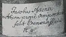Jacob attended the school until 1630, probably learned Latin and spoke Italian. He was sent to Innsbruck to learn the art of organ building with Daniel Hertz, but not being inclined to the work was directed towards the construction of violins. In this field a good knowledge of technical, artistic, drawing, carving and materials is needed. He then completed an apprenticeship in joinery with a relative, Hanns Grafinger. In c.1630 to 1643, he went to Cremona as journeyman to complete his training as a luthier, possibly with Nicolò Amati.[6] Although his name does not appear on the lists of Amati's apprentices, a violin made c.1645 has been cited with an original label at the top block stating: "Jacob Stainer/ fecit Cremona 16..";[7] perhaps he also went to Venice to work for a short period with Vermercati.