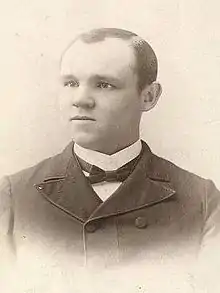 At the age of twelve, he graduated from elementary school, passing the Oxford Diocesan Association exam for a second-class certificate. Talmage received a distinguished primary education and was named an Oxford Diocesan Prize Scholar after six years of schooling.[3][1]: 501–502 He was baptized a member of LDS Church at age 10 on 15 June 1873,[3] but due to local hostilities toward Latter-day Saints, he was baptized in secret at night.[4] The same year he accidentally pierced his younger brother's (Albert) eye with a digging fork, blinding him.[1]: 506–507 He moved with his family to Provo, Utah Territory, in 1876.[5]: 9–10 In Provo, he studied the Normal Course at BYA, with Karl G. Maeser as one of his teachers; he graduated in 1879 at the age of seventeen.[5]: 11–12 He became an instructor at BYA while continuing to study.[3] In 1881, Talmage became the first graduate from the Scientific Department at BYA and the first student from BYA to receive a college degree.[6]: 3