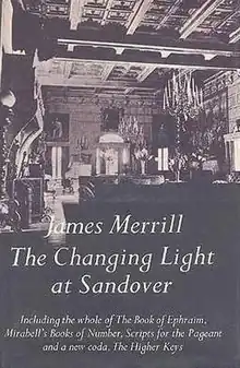 As Merrill matured, the polished and taut brilliance of his early work yielded to a more informal, relaxed, and conversational tone.[29][30] Already established in the 1970s among the finest poets of his generation, Merrill made a surprising detour when he began incorporating extensive occult messages into his work (although a poem from the 1950s, "Voices from the Other World," foreshadows the practice).[8][31] The result, a 560-page apocalyptic epic published as The Changing Light at Sandover (1982), documents two decades of messages dictated from otherworldly spirits during Ouija séances hosted by Merrill and his partner David Jackson. The Changing Light at Sandover is one of the longest epics in any language, and features the voices of recently deceased poet W. H. Auden, Merrill's late friends Maya Deren and Greek socialite Maria Mitsotáki, as well as heavenly beings including the Archangel Michael. Channeling voices through a Ouija board "made me think twice about the imagination," Merrill later explained. "If the spirits aren't external, how astonishing the mediums become! Victor Hugo said of his voices that they were like his own mental powers multiplied by five."[32]