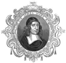 The 1660 Stuart Restoration saw Ware resume his position as auditor general which had been stripped from him by the Cromwellian regime. He was re-elected as MP for the University of Dublin at the Irish parliament of 1661-66 and continued to be an active member of the privy council.[7] More significantly, he was appointed one of the commissioners for the Irish land settlement - a lucrative position and reward for his unwavering loyalty to the Crown and Ormond during the 1640s. He remained on close terms with the duke, who frequently visited him for consultations at his home in Castle Street. He died there on 1 December 1666, aged seventy-two, and was buried in St Werburgh's Church, Dublin. In 1879 the curate, Rev. J. H. McMahon, sought to solicit subscriptions to erect a mural table by way of paying tribute to "Ware’s vast merits as a reliable writer of Irish history, and as a real credit to Ireland, and to Dublin, his native city".[8] Though McMahon's attempts proved futile, it nevertheless served as a reminder of Ware's enduring legacy and esteem with which he was held two hundred years later.
