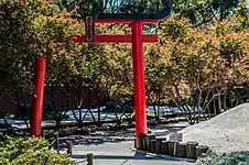 Japanese gardens have their roots in the national religion of Shinto, with its story of the creation of eight perfect islands, and of the shinchi, the lakes of the gods. Prehistoric Shinto shrines to the kami, the gods and spirits, are found on beaches and in forests all over the island. They often took the form of unusual rocks or trees marked with cords of rice fiber (shimenawa) and surrounded with white stones or pebbles, a symbol of purity.[5] The white gravel courtyard became a distinctive feature of Shinto shrines, Imperial Palaces, Buddhist temples, and Zen gardens. Although its original meaning is somewhat obscure, one of the Japanese words for garden—niwa—came to mean a place that had been cleansed and purified in anticipation of the arrival of kami, and the Shinto reverence for great rocks, lakes, ancient trees, and other "dignitaries of nature" would exert an enduring influence on Japanese garden design.[6]