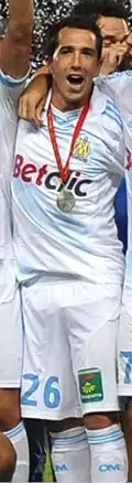 ![]() Sabo with Marseille in 2011 celebrating the club's Trophée des Champions win | |||