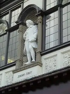 Statue of Jedediah Strutt on the Boots building, East Street, Derby