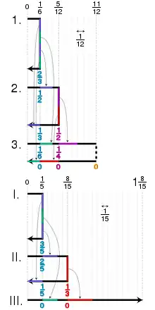 - For m=1/4<(1/3+1/15), only one midway camp post is necessary at a distance of 1/15 units away from the starting base, where a total of 2 units of bananas will accrue. The distance from the camp post to the market is (1/4-1/15), which will be repeated 3 times by the camel, and the maximum amount of bananas tranported to the market is 2-(1/4-1/15)*3=1.45 units;