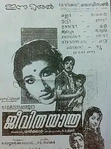 Jeevithayaathra is a 1965 Indian Malayalam-language film, directed by J. Sasikumar and produced by K. P. Kottarakkara. The film stars Prem Nazir, Madhu, Sheela, Ambika, Sukumari and Adoor Bhasi. The film had musical score by P. S. Divakar.[1][2]