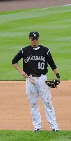 Jeffrey Glen Baker (born June 21, 1981) is a German-born American former professional baseball player. He bats and throws right-handed. He played in Major League Baseball for the Colorado Rockies, Chicago Cubs, Detroit Tigers, Atlanta Braves, Texas Rangers and Miami Marlins. Primarily a second baseman and first baseman, Baker also has experience in the outfield and at third base.