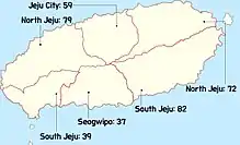 - Jeju City (Hangul: 제주시) : 59
