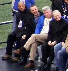 ![]() Reese (far left) with the 2007 Super Bowl champion coaching staff: defensive coordinator Steve Spagnuolo, offensive coordinator Kevin Gilbride, and head coach Tom Coughlin at Giants Stadium | |