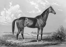 The American Stud Book, the registration book for American Thoroughbreds, was not founded until 1873, much later than the General Stud Book,[8][lower-alpha 1] and the rules for registration required only that a horse have five generations of ancestors in the American Stud Book or other national stud books, unlike the General Stud Book rules.[10] In addition, many breeding records were destroyed during the American Civil War, as fighting during that conflict took place in noted American Thoroughbred breeding centers. The result was that most American Thoroughbreds in 1913 were unable to show an unblemished pedigree according to the General Stud Book rules. Adding to the problem was the fact that American horses were beginning to win the big horse races in England, starting with Iroquois, who won the 1881 Epsom Derby.[8]