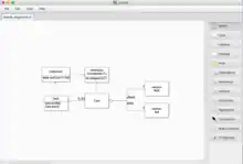 JetUML aims to sketch software design ideas with a minimalist feature set.[4] It allows users to create, modify, and annotate the main UML diagram types: class, sequence, state, object diagrams, and use case. JetUML uses UTF-8 encoding to share diagrams across systems including Windows, Linux, and macOS.