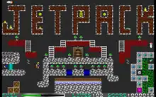 Jetpack is a platform game available as freeware, developed by American studio Adept Software and originally published as shareware by Software Creations in 1993. The object of the levels is to collect all of the green emeralds scattered around the level while avoiding obstacles and enemies. Once accomplished, a door opens which the player must go through in order to advance to the next level. There is a single player, and a local multiplayer mode. The multiplayer mode supports up to eight players, where players take turns on the same machine.