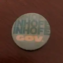 Inhofe had been floated as a potential gubernatorial candidate since 1972.[62][63] Inhofe was considered a strong Republican candidate with his only weaknesses being his feuding with Leo Winters and the backlash to the USS Batfish project.[64] By May 1973, he was openly campaigning, but had yet to officially announce his campaign.[65] In October of that year, he was polling behind Denzil Garrison in the Republican primary 35% to 65%.[66] Inhofe officially launched his campaign in May 1974.[67] The main issue in both the Republican and Democratic primary campaigns was corruption during David Hall's term.[68] Inhofe defeated Garrison in the August primary.[69] During the campaign, he lost 57 pounds and was down to 148 pounds.[70]