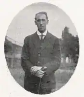 In World War I, Prentice served in the 3rd Dragoon Guards (Prince of Wales' Own), where he held the rank of Lance Corporal.[12] Prentice was wounded on 5 June 1915 at Hooge near Ypres and died in hospital the following day in Boulogne, France, aged 30.[2][4][12][13]
