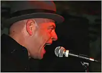 John Patrick Kamys, (born September 21, 1968, Chicago, Illinois, United States) better known by his stage name Jinx Titanic is an American composer, singer, songwriter, recording artist, and author, best known for his outrageous stage persona, and image as the beer-swilling, cigar-smoking, sexually-candid, lead singer of the eponymous rock band. Occasionally he will appear as a stage actor, movie actor, comedian, television personality, or host, and is also considered a notable member of the Queercore and Homocore[1] movements.