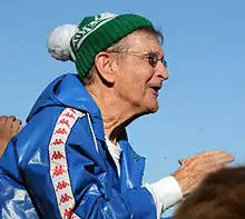 Joe Newton (April 13, 1929 – December 9, 2017) was a high school cross country and track coach at York High School in Elmhurst, Illinois. In sixty years of coaching between 1956 and 2016, he won 28 Illinois state cross country titles[1] and one track state title.[2][3] A feature-length documentary was made about his life and successes, called The Long Green Line[4] after his team's nickname.[5] He died on December 9, 2017, aged 88.[6] Among his many accomplishments he was an assistant manager in charge of marathon runners in the U.S. team for the 1988 Olympics. He was the first high school coach to hold such an honor.[7] He was awarded the National Cross Country Coach of the Year four times and wrote four books, concentrating on training and motivation.[8]