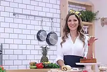 In 2019 she published her first book through Penguin Random House publishing house, entitled Cocina latina ligera: recetas y consejos para una vida más saludable, in which she presents nearly 200 healthy cooking options.[3][9] She also contributed recipes to the publications Reta tu vida by José Fernández and El reto de las seis semanas by Klara Senior and has published articles in both the Miami digital magazine Éxito con tacones and in the newspaper El Venezolano.[10] In July 2020 she was invited by the People en Español magazine to host a series of virtual events for the Latino community.[11]