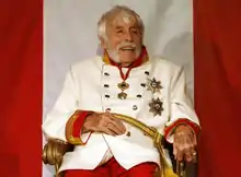 Heesters met Hitler several times,[11] especially in the role of Count Danilo.[12] Throughout the war, Heesters continued to perform for German soldiers in camps and barracks. According to German author Volker Kühn, Heesters performed for the SS at the Dachau concentration camp. Kühn cites as evidence the testimony of a Dachau inmate, Viktor Matejka, who worked for the SS and told Kühn he pulled the curtain when Heesters performed in 1941.[13][14] According to German writer Jürgen Trimborn however, the interview with Matejka may not be reliable as it occurred some 50 years after the performance was said to have taken place.[15]