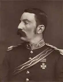 Chard was present in the British square during the decisive victory at the Battle of Ulundi and remained in Africa until the end of the war.[4] His arrival back in Portsmouth in October 1879 was greeted with celebration. In addition to a series of presentations and dinners bestowed in his honour, he attended Balmoral Castle to dine with Queen Victoria who was impressed by his modest and unassuming demeanour.[1][26] Chard returned to duty at Devonport in January 1880 and was posted to Cyprus in December 1881. His brevet majority was substantiated on 17 July 1886 and he returned to England in March 1887 to take up a position in Preston.[4] He was ordered to Singapore in December 1892 and received a promotion to lieutenant colonel.[4] He returned to England in 1896 and took up his final post as Commanding Royal Engineer at Perth, Scotland, and was promoted to colonel on 8 January 1897.[4]
