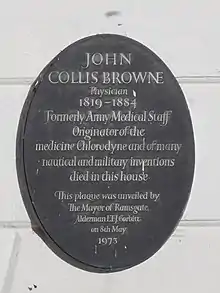 Upon Browne's death plans were made by Messrs Davenport to erect a plaque in his memory on the house where he had lived. The plaque was designed by the lettering craftsman William Sharpington and unveiled by the Mayor of Ramsgate on 8 May 1973. Dr N.M. Goodman recorded the event in The Lancet.[2]