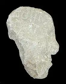Sometime between 1931 and 1933, an Idaho farmer named William Beard and his son discovered a rock carved into the shape of a man's head while clearing a field in Tetonia, Idaho, which is immediately west of the Teton Range. The rhyolite lava rock is 13 inches (330 mm) long, 8 inches (200 mm) wide and 4 inches (100 mm) thick and has the words "John Colter" carved on the right side of the face and the number "1808" on the left side and has been dubbed the "Colter Stone".[21] The stone was reportedly purchased from the Beards in 1933 by A.C. Lyon, who presented it to Grand Teton National Park in 1934.