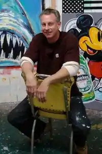 Currently he works out of a historic warehouse outside of Philadelphia. Stango paints in the vein of such artists as Andy Warhol, Jean-Michel Basquiat, Robert Rauschenberg, Roy Lichtenstein, LeRoy Neiman, and Peter Max. Newspapers, retro advertising, pop icons, B-movies, mid-century modernism, magazines, noir films, vintage signage and pop-culture inspire his works. Batman and Elvis, Audrey Hepburn and Lucky Strike, and Mickey Mouse and Heineken are some of the well-known subjects of Stango's paintings.[2][4][5]