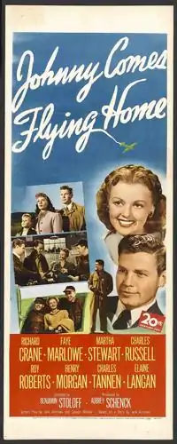 Johnny Comes Flying Home is a 1946 American adventure film directed by Benjamin Stoloff and starring Richard Crane and Faye Marlowe; the supporting cast features Harry Morgan.[1] The plot involves postwar pilots starting a small aviation company.[2]