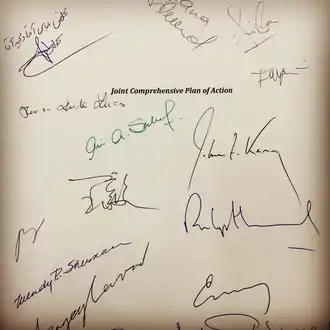 The agreement between the P5+1+EU and Iran on the Joint Comprehensive Plan of Action (JCPOA) is the culmination of 20 months of "arduous" negotiations.[52][53]
