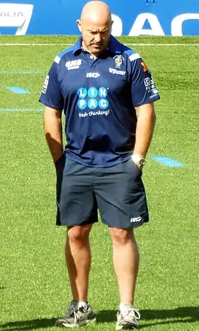 Jon Sharp (born 8 March 1967) was the head coach of Featherstone Rovers from 2015 to 2017. Between 2004 and 2008 he was head coach of the Huddersfield Giants,[4] having been appointed in 2003 when Tony Smith left the club for the Leeds Rhinos. He was also part of the Great Britain coaching set-up under head coach Brian Noble. As a player, he played for Hull FC, and he has also worked as a member of the backroom staff there.