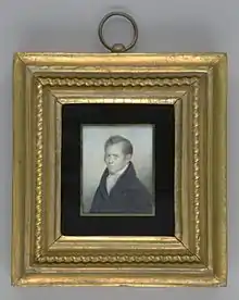Judge Leavitt was born in Walpole, N.H., but was raised in Greenfield, where his father Rev. Jonathan Leavitt served as a Congregational minister.[3] Leavitt attended Yale College, taught school in New Haven, and then achieved early prominence as a lawyer in Greenfield. He subsequently served as chief justice of the Court of Common Pleas in 1812, and Judge of Probate from 1814 to 1821.[4] Judge Leavitt used the west wing of the Leavitt-Hovey house for his business activities. He was a founder and first president of The Franklin Bank of Greenfield in 1822.