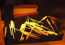 Jonchets or onchets is a pick-up sticks game from France played with carved sticks. References to the game date back as far as the 17th century, and it was quite popular at the start of the 20th century. The sticks were originally made of rush, but later also from wood, bone or ivory.