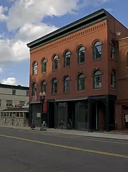The block was built in 1895 for Albert Jones, a clerk in a local clothing retailer. Originally two stories in height, it housed that store on the ground floor, and the local Hibernian Hall on the second floor. The third floor was added in the early 20th century, using matching materials and styling to the original construction, and replicating its original cornice. The styling and placement of the third floor windows suggest that it was also used as a meeting space; it is not known whether Jones had planned for the expansion when the structure was originally built.[2]