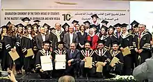 JMI offers a practical master's degree in journalism and New Media in cooperation with University of Jordan in accordance with the academic agreement between the two institutions. An intensive professional development and training program catering to industry needs. The MA program has two tracks, a one–year Comprehensive track and a Thesis track. While JMI's language of instruction is Arabic, some classes and guest lectures are offered in English.[2]