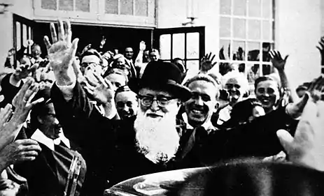 In March 1942, Kentenich was sent to the Dachau concentration camp at a moment when the living conditions there were worsening. Of the 12,000 prisoners, there were 2,600 priests. He was inmate number 29392.[7] The Germans were grouped in a block where they have the right to attend daily Mass celebrated by one of them; it is only on 19 March 1943 that Kentenich would finally celebrate his first Mass at the camp. He gave a nightly spiritual conference to his fellow prisoners thanks to the protection of the "kapo" (inmate block chief) Guttmann, a Communist with a rather violent temper, but fascinated by the behavior of the Father. Guttman saw Kentenich sharing his meager daily bread and soup with a detainee in need. Guttmann will save the priest who is destined to die in the gas chamber because of his poor health. On the day of the selection visit by an S.S. physician, the kapo hides Father Kentenich; assigned to the disinfection commando, he can now circulate in the camp.[4]