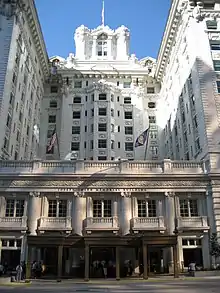 The ten-story building has a concrete and steel structure and is covered with white glazed terra cotta and brick. Various additions and remodelings have occurred throughout the years, including a substantial expansion to the north and modifications to the roof-top dining facilities.