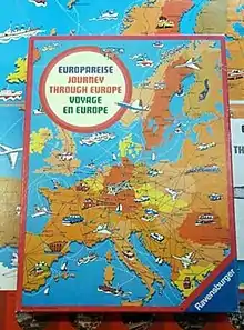 In 1935, Otto Maier Verlag published Deutschlandreise ("Germany Trip"), a game designed by Jochen Zeisse to encourage children to learn the names and locations of German cities.[3] After World War II, a pan-European version of the game was redesigned by Hervert Vladimir Fuka, O. Fairgagnetr and Francesco Ricciardi, and released as Europareise ("Europe Trip") in 1954.[4]