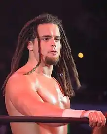 On the July 4 episode of NXT, Parker teamed with Nick Rogers in a losing effort against Corey Graves and Jake Carter. He was then initially used as a jobber on NXT and was defeated by the likes of Roman Reigns and in a tag team match with Mike Dalton against The Ascension,[7] before suffering an injury that kept him out of action for several months. Parker returned to NXT in July 2013 with a new hippie character, beginning a feud with Tyler Breeze that saw the two trading wins over several months.[8] Although intended to be a fan favorite, Parker's hippie gimmick was largely unpopular and he was turned heel as a result on the February 12, 2014, edition of NXT, berating the fans for not getting behind him, calling them "Sheeple", and blaming them for the growing issues with the environment. He would tweak his character to that of an eco-warrior who berated fans for damaging the environment.[9][10] Parker beat Tye Dillinger in January 2014 but was then largely unsuccessful, losing to main roster stars like Antonio Cesaro, The Miz and The Great Khali, as well as a defeat by Mojo Rawley at NXT Arrival.[9]