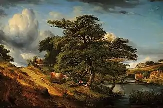 André painted in a manner halfway between the style of the old French classic landscape painters and that of the modern school. He executed several decorative panels in the new Louvre Palace, and in the Hôtel d'Albe. He obtained a second-class medal in 1835, and the decoration of the Légion d'honneur in 1853.