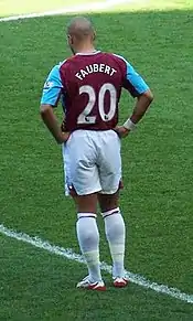 On 23 June 2007, it was reported in French sports newspaper L'Équipe that Faubert was on the verge of a €6.5 million (£4.3 million) transfer to Rangers.[6][7] On 1 July, however, he was signed by West Ham United for £6.1 million on a five-year contract.[8] He suffered a ruptured achilles tendon during a pre-season friendly on 17 July against Czech side Sigma Olomouc, which was expected to take six months to heal.[9] As part of his comeback, Faubert turned out for the reserves against Aston Villa's reserve team in January 2008.[10] He finally made his first team debut for the Hammers as a late substitute against Fulham at Boleyn Ground on 12 January 2008.[11] His first season in English football was marked by continuing injury and he made only eight appearances in the league and FA Cup.[11]
