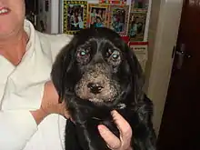 Juvenile cellulitis, also known as puppy strangles or juvenile pyoderma, is an uncommon disease of dogs.[1] Symptoms include dermatitis, lethargy, depression and lameness. When puppies are first presented with what appears to be staphylococcal pyoderma, juvenile cellulitis, a relatively rare condition, may not be considered.[2]